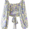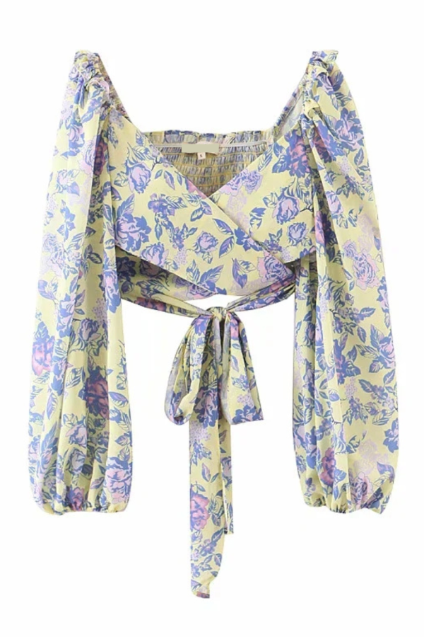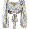Goodnight Cottonsweaterto ‘Sapphire’ Floral Long-Sleeve Tie Crop Top