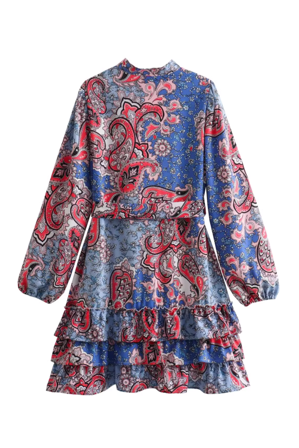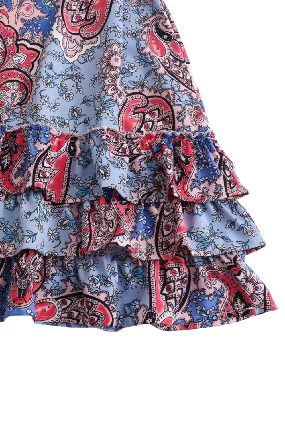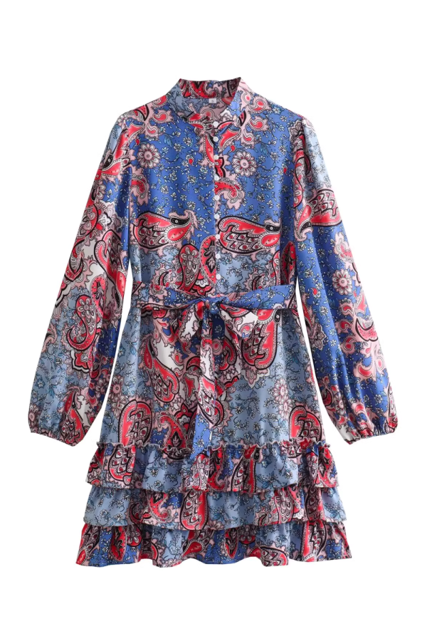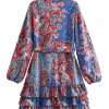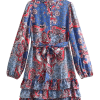 Goodnight Cottonsweaterto ‘Sapphire’ Floral Waist-Tie Ruffled Layered Dress